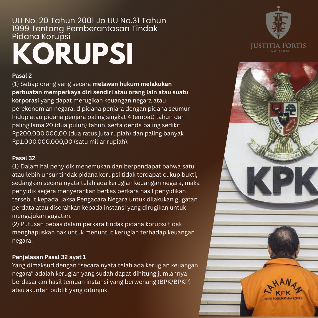Pasal 2 UU Pemberantasan Tindak Pidana Korupsi menegaskan bahwa setiap orang yang secara melawan hukum…