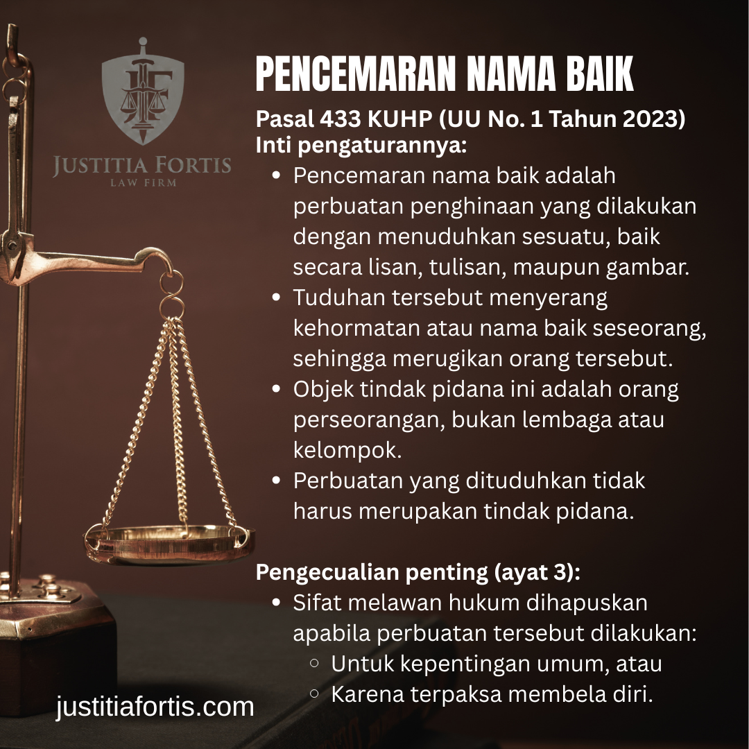 Pasal 433 (1) Setiap Orang yang dengan lisan menyerang kehormatan atau nama baik orang lain…